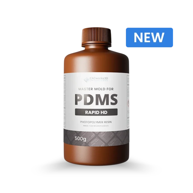 At CADworks3D, we provide a complete 3D printing system that makes it easy for researchers to create high-resolution master molds—right at the bench. There is no need for cleanroom access or complicated fabrication steps. Just 4 simple steps : CAD, Pour, Print and Clean. You can have a functional mold ready within a day.