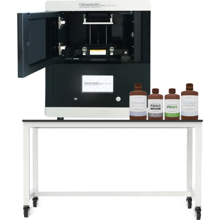 If you want to streamline microfluidic device production, the ProFluidics 285D is your ideal solution, enabling efficient, rapid prototyping and advanced research when paired with our specialized 3D materials for microfluidics.